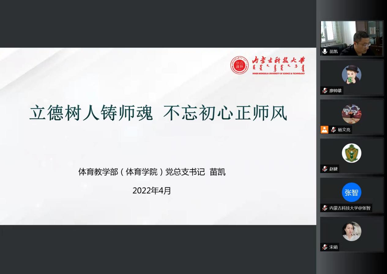 2022年4月14日下午,yl7703永利集团党总支组织开展专题党课,党总支书记苗凯以《立德树人铸师魂,不忘初心正师风》为题,通过腾讯会议为yl7703永利集团全体教师讲授了专题党课。