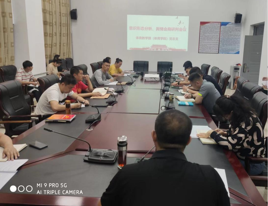 6月21日,yl7703永利集团党总支在体育馆二楼会议室召开意识形态分析、舆情会商研判会议,贯彻落实学校关于意识形态工作要求,研究部署下一步工作。党总支书记苗凯主持会议,学院科级以上领导干部及任课教师代表参会。