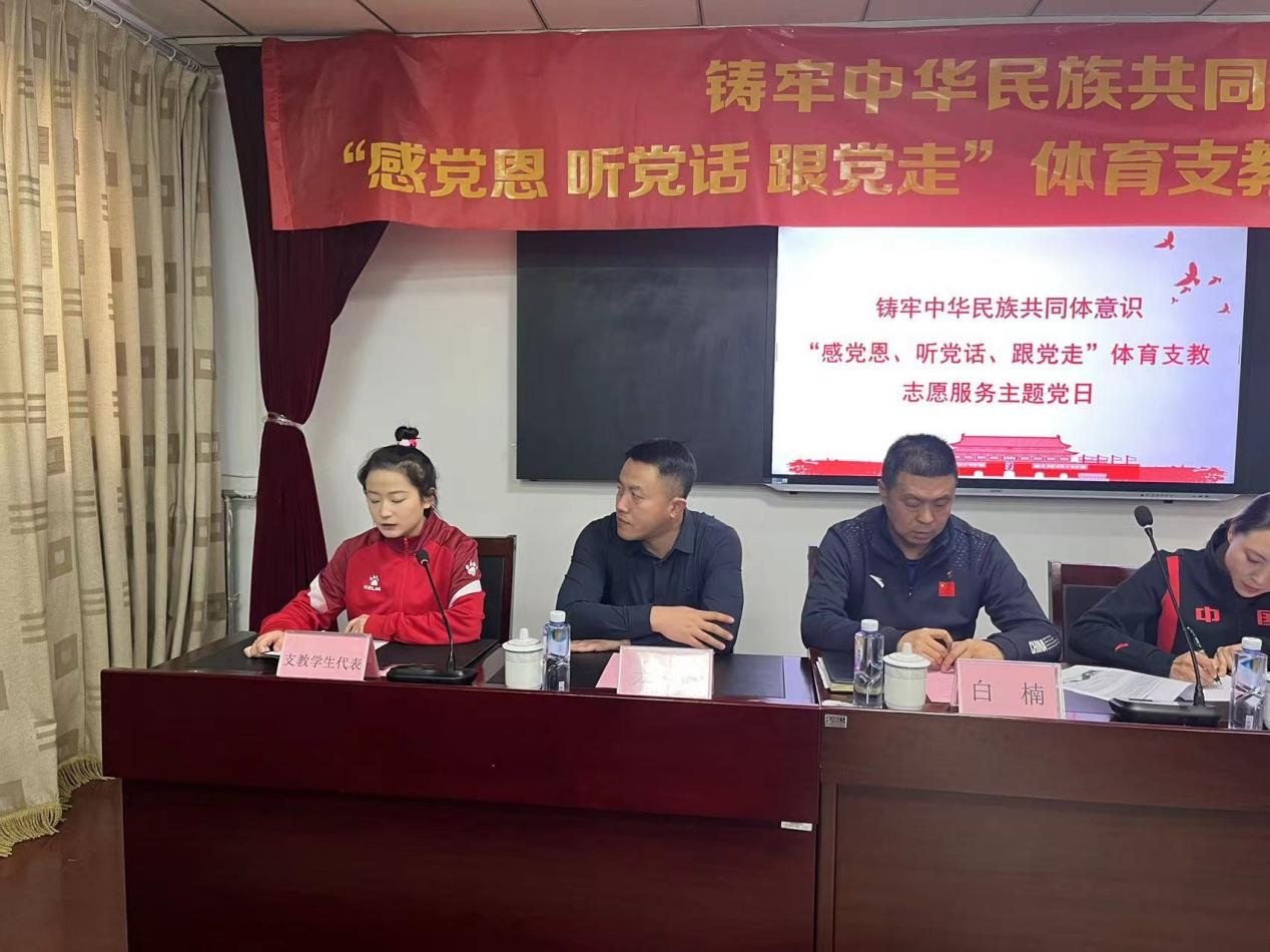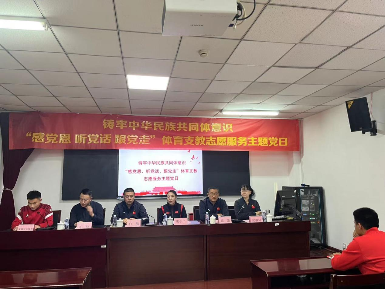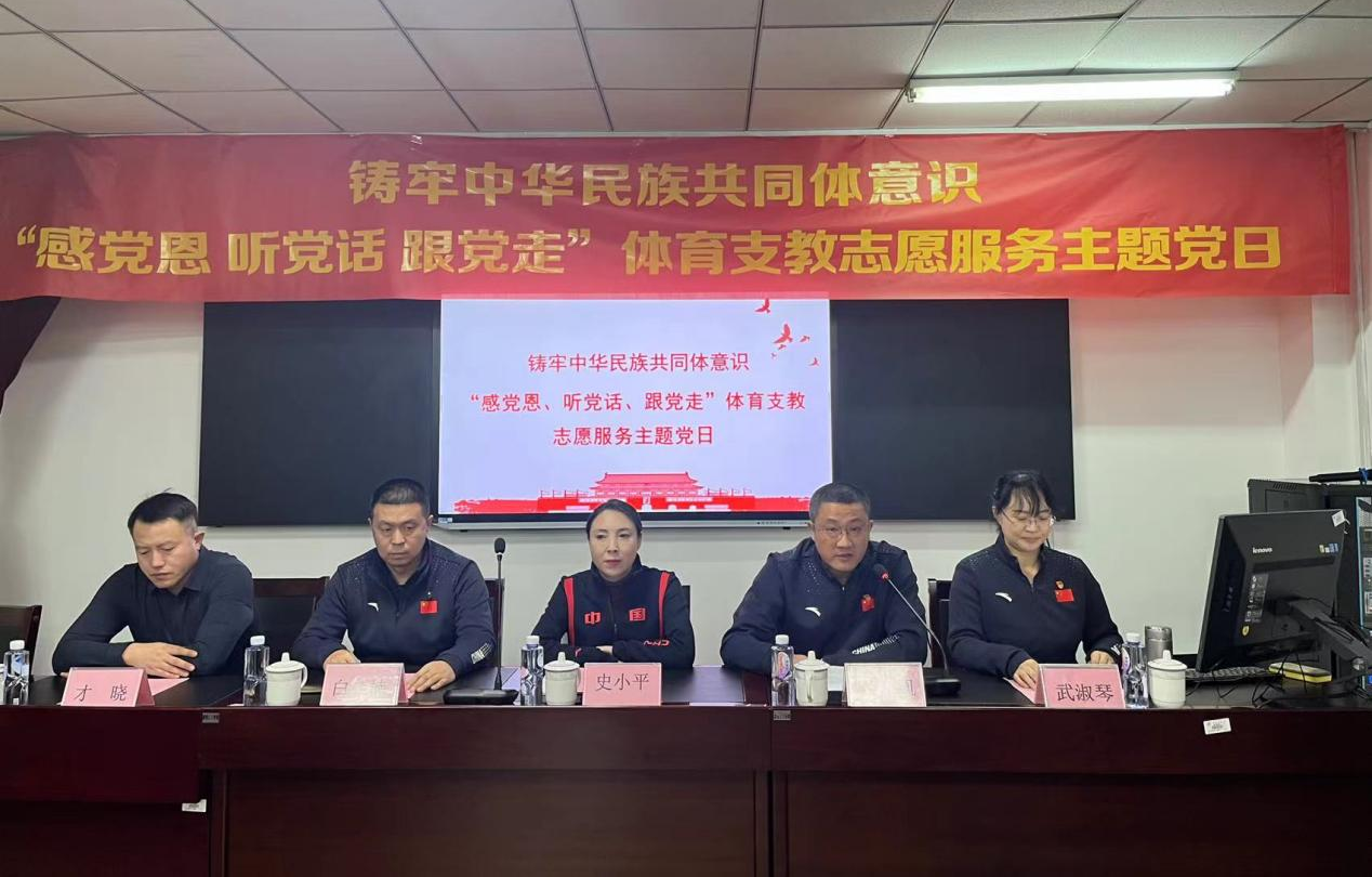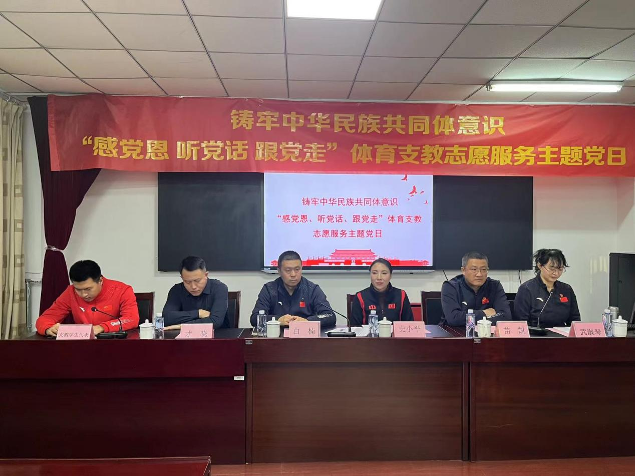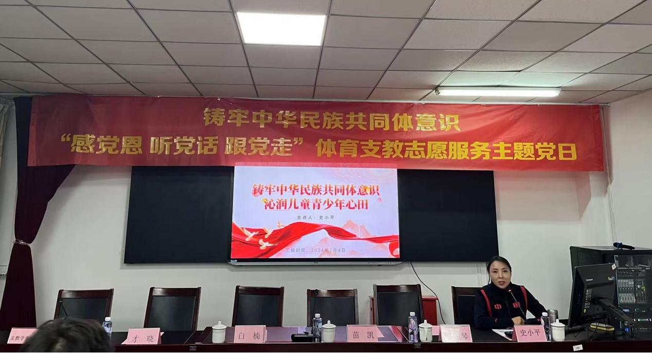 2024年1月4日,yl7703永利集团在永利集团体育馆组织开展铸牢中华民族共同体意识“感党恩、 听党话、跟党走”体育支教志愿服务主题党日活动,内蒙古体育局青少年体育处处长史小平、主任科员才晓出席活动,yl7703永利集团党委书记苗凯、主任(院长)白楠、党委副书记武淑琴、学院全体学生参加活动,活动由党委副书记武淑琴主持。