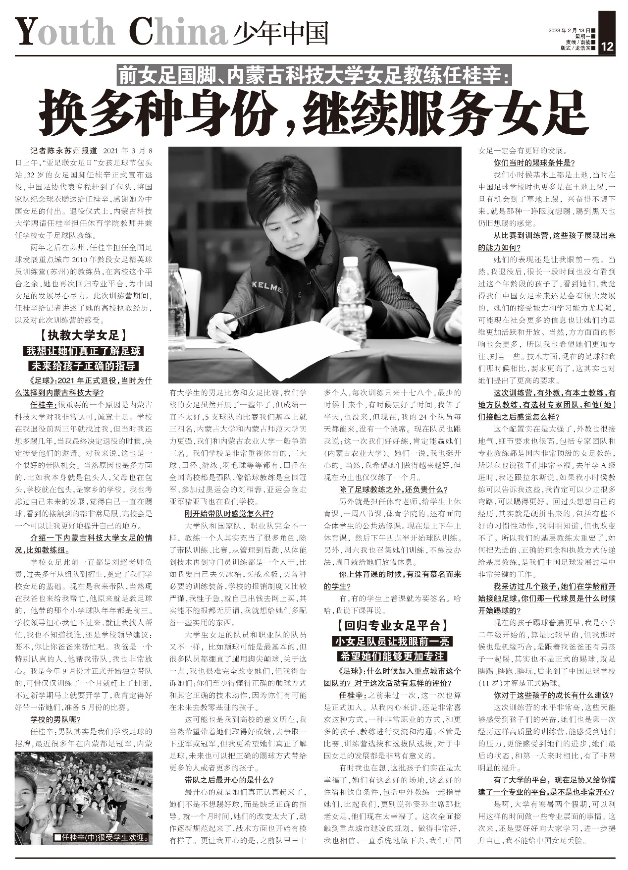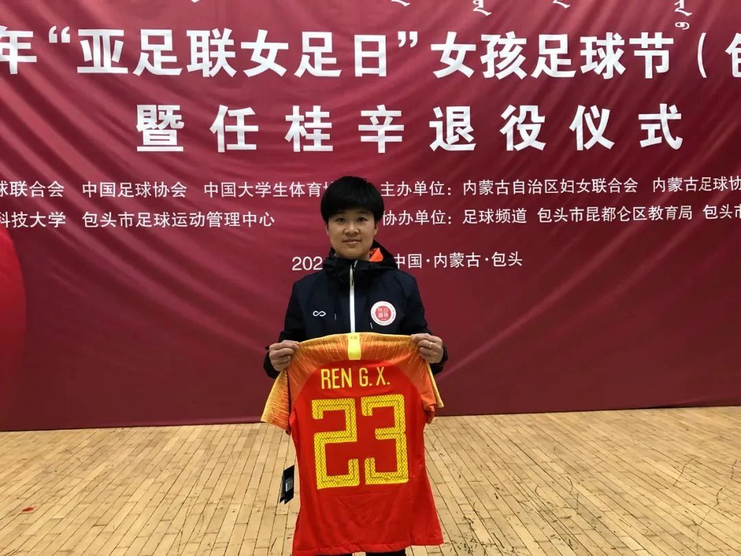 2021年3月8日上午,“亚足联女足日”女孩足球节包头站,32岁的女足国脚任桂辛正式宣布退役,退役仪式上,我校引进了任桂辛担任体育学院教师并兼任学校女子足球队教练。