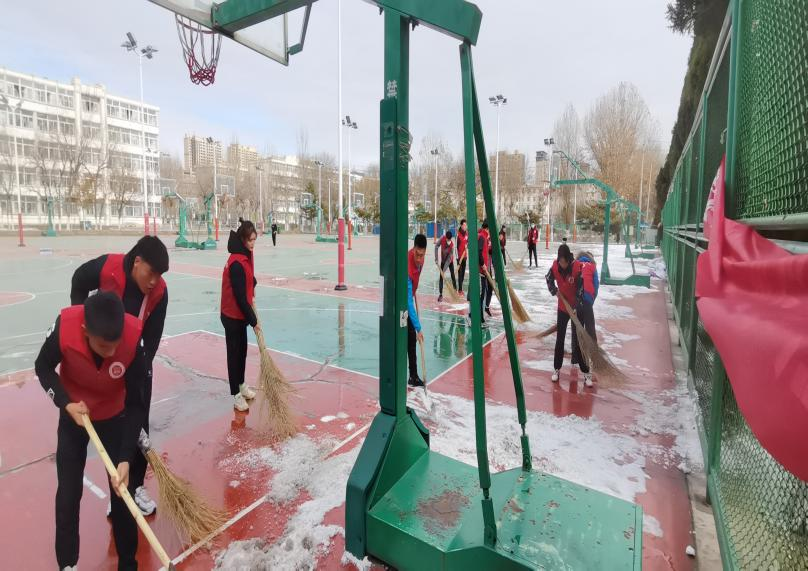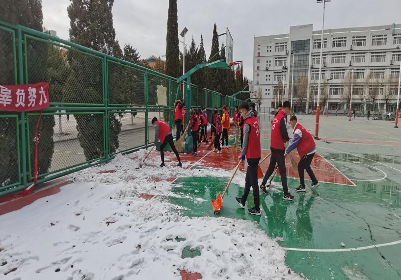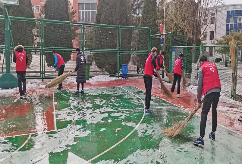2021年11月9日,为保证师生上课安全,yl7703永利集团组织学生会全体成员对室外篮球场地进行除雪。清扫当中,为了推进工作进度,以小组为单位,分片划区、分工合作用铁锹铲、扫帚扫,篮球场地很快清扫完成,切实消除了由于下雪结冰带来的安全隐患。