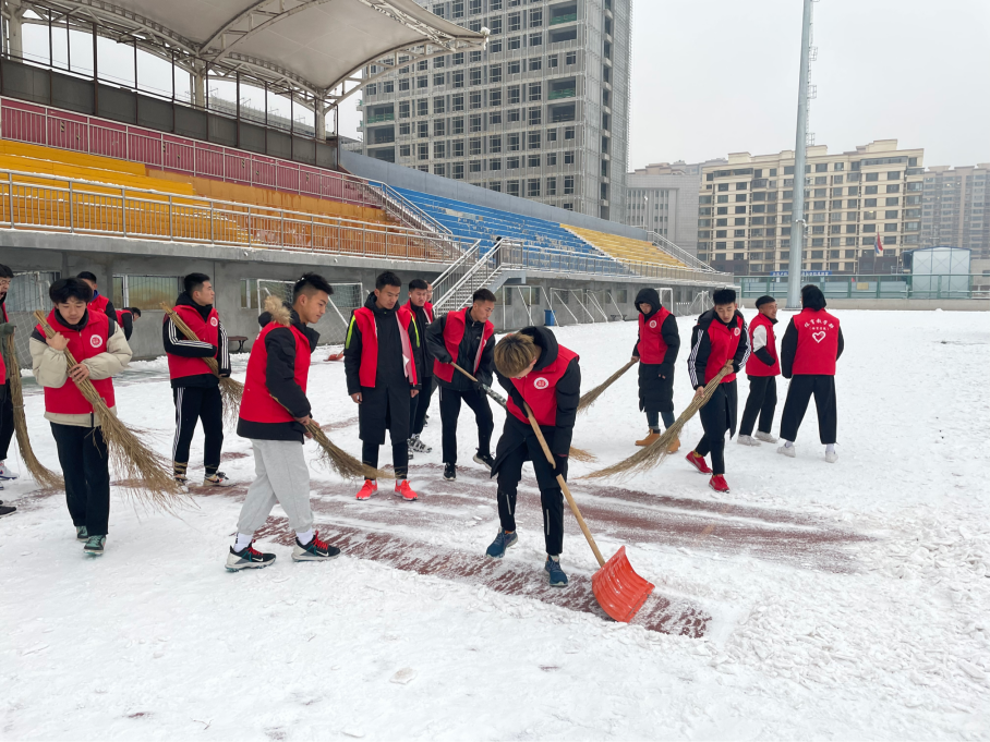 2021年12月8日,包头市迎来了入冬以来的第二场大范围降雪,yl7703永利集团2019级和2021级体育教育专业团支部同学主动作为,本着“服务老师,服务同学”的宗旨,组织全体同学对操场及周边道路积雪进行清理,为广大师生的安全保驾护航。