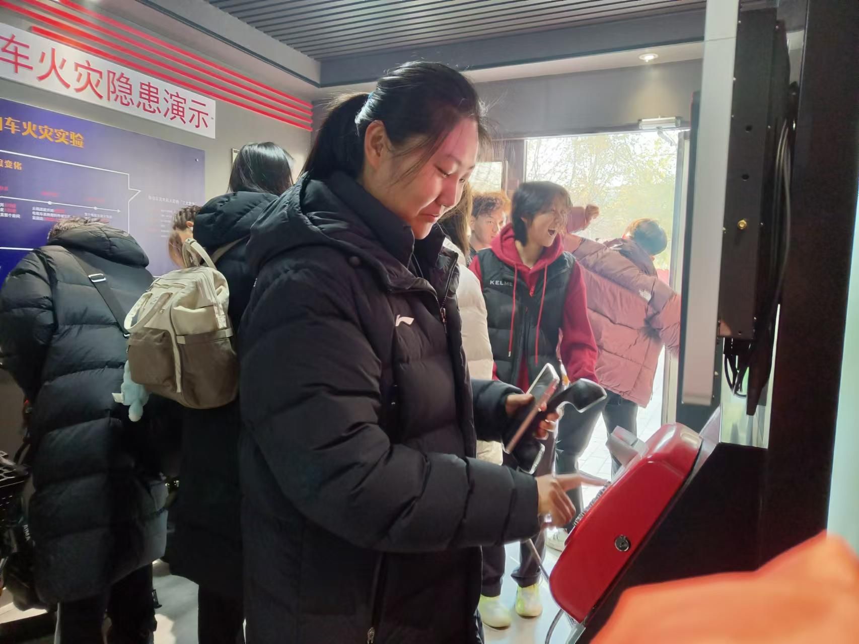 一进站,各种消防器材便吸引了大家的目光,从常见的灭火器到专业的破拆工具,讲解员详细地介绍了它们的功能和使用场景,同学们认真聆听,不时提出问题。在火灾案例展示区,触目惊心的图片和视频让大家深刻认识到火灾的危害,也明白了消防安全的重要性。