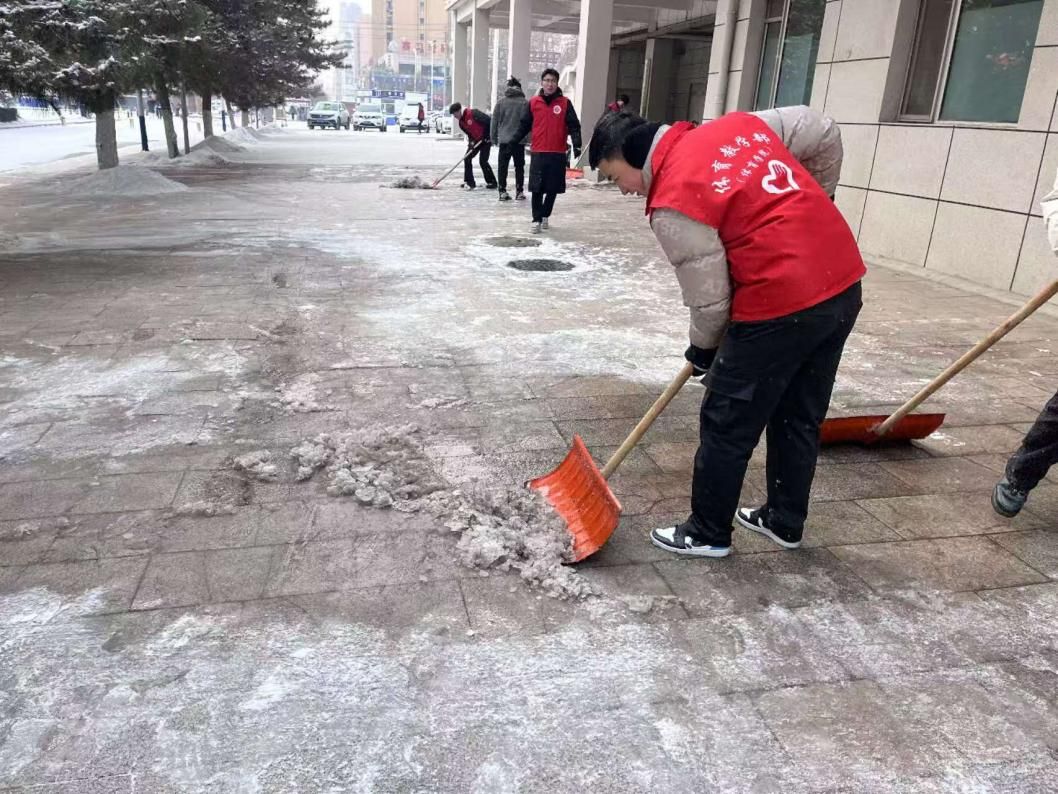 在学院学生会的指导下,青年志愿者协会的志愿者们积极响应,他们不畏严寒,手持铁锹、扫把等工具,对体育馆周边的道路进行了彻底的清扫。尽管天气寒冷,但同学们的热情高涨,他们分工合作,有的铲雪、有的扫雪、有的负责清理路边的积雪,确保道路畅通无阻。