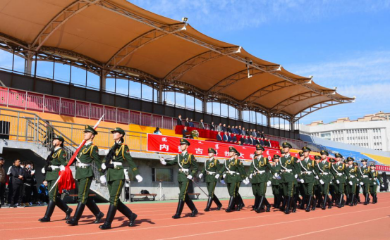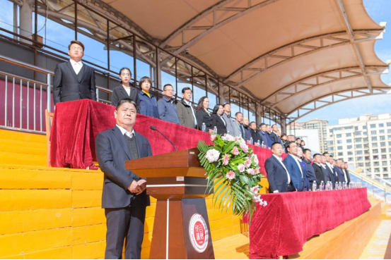 伴随着庄严的国歌,国旗护卫队护送五星红旗整齐入场,开学典礼的序幕正式拉开。