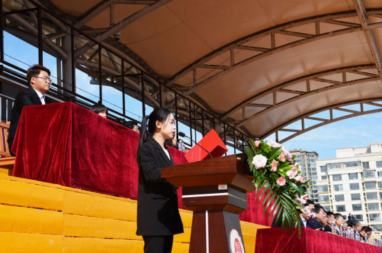 在校生代表经济管理学院2017级的卢慧敏表达了对学校的感激之情,对大一新生的到来表示热烈的欢迎。她说,回首大学时光心潮澎湃、斗志昂扬,校园文化丰富多彩,课内学习、课外实践、社团活动种类繁多,内科大是一个会让大家充满力量,催人奋进的校园。我们是新时代建功立业的奋斗者,实现中华民族伟大复兴的中国梦需要一代一代人传递。