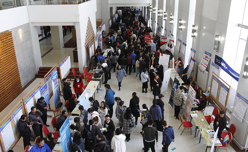 据招生就业处相关负责人介绍,本次招聘会与往年相比呈现出招聘企业种类更加多元化的特点,除国有、煤炭、钢铁、中建、中冶等近百家大型企业外,还包含了互联网、金融、家装、食品、教育培训、管理咨询等其他公司。
