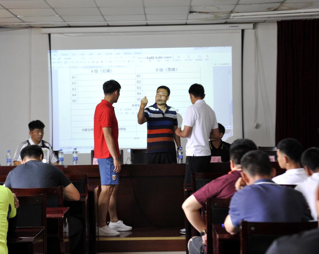 6月1日下午16:00,2018年内蒙古自治区“主席杯”校园足球四级联赛大学生超级组领队、教练员、裁判员联席会在内科大体育馆二楼会议室举行。内蒙古校园足球联合会秘书长、永利集团体育教学部(足球学院)主任田瑞峰,内蒙古校园足球办公室竞赛负责人陈子文,比赛监督孙志华、裁判长贺春亮参加会议。联席会由永利集团体育教学部(足球学院)副主任白楠主持。