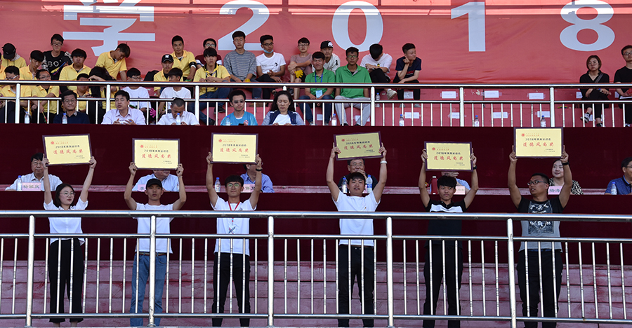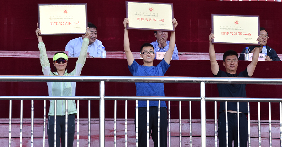 大会宣告了体育运动会竞赛成绩和道德风尚奖获得者。教工组的前三名分别为:土木工程学院、材料与冶金学院、信息工程学院。学生组的前三名分别为:土木工程学院、矿业与煤炭学院、经济与管理学院。教工组获得道德风尚奖的学院有:能源与环境学院、矿业与煤炭学院、材料与冶金学院、艺术与设计学院、理学院、建筑学院。学生组有:艺术与设计学院、土木工程学院、信息工程工院、能源与环境学院、生命科学与技术学院、理学院、矿业与煤炭学院、化学与化工学院。