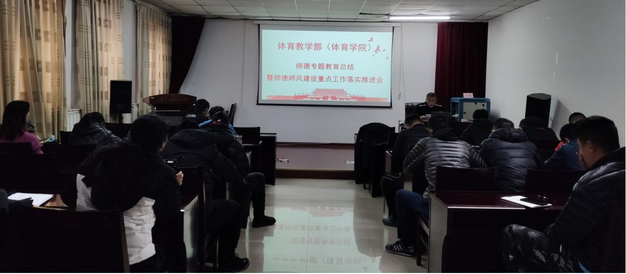 2021年11月18日,yl7703永利集团在体育馆多媒体教室召开师德专题教育总结暨师德师风建设重点工作落实推进会,学院党总支书记苗凯主持会议,全体教职工参加会议。
