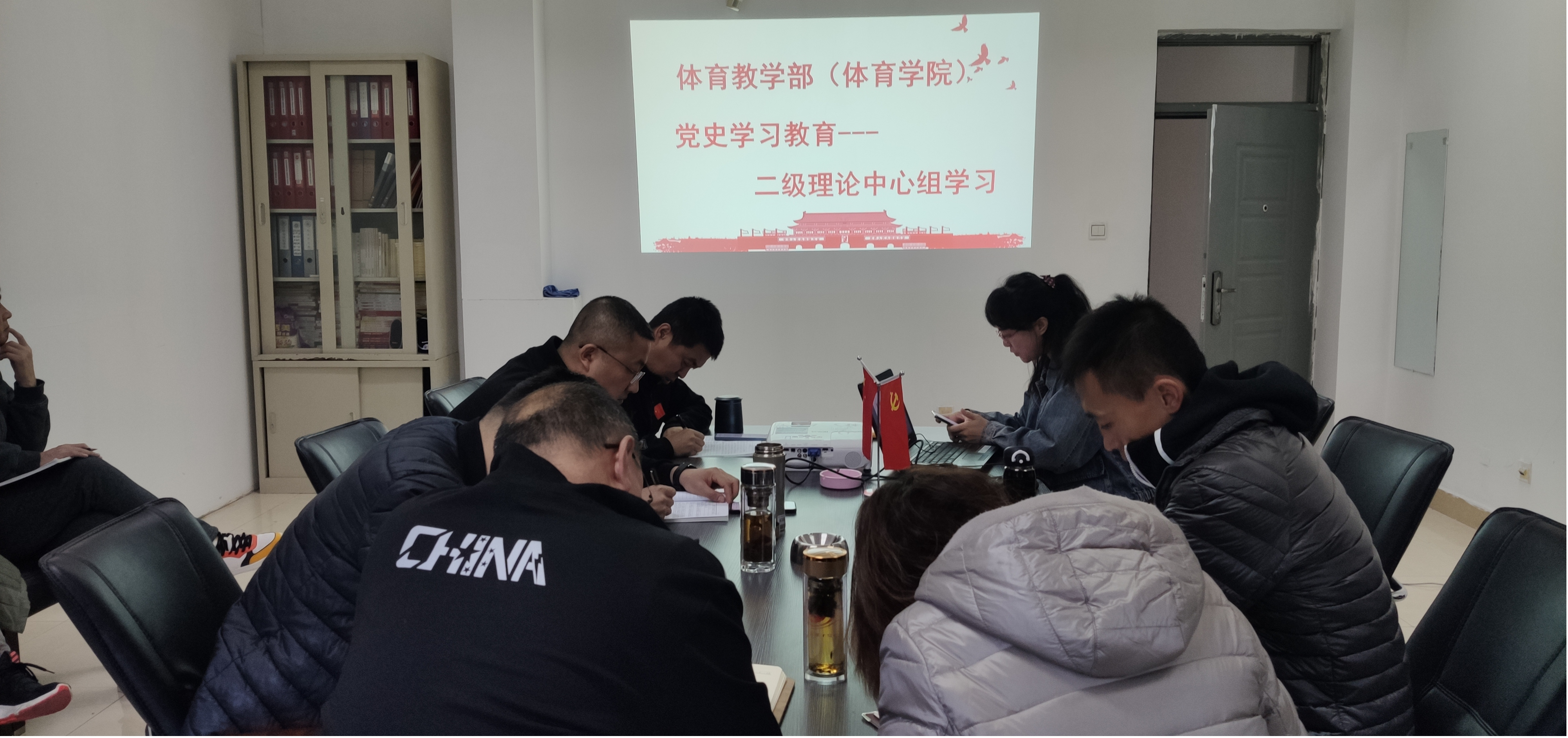 11月22日,yl7703永利集团党总支理论中心组在体育馆一楼会议室开展集中学习,专题学习党的十九届六中全会精神,学院党总支副书记武淑琴主持会议。