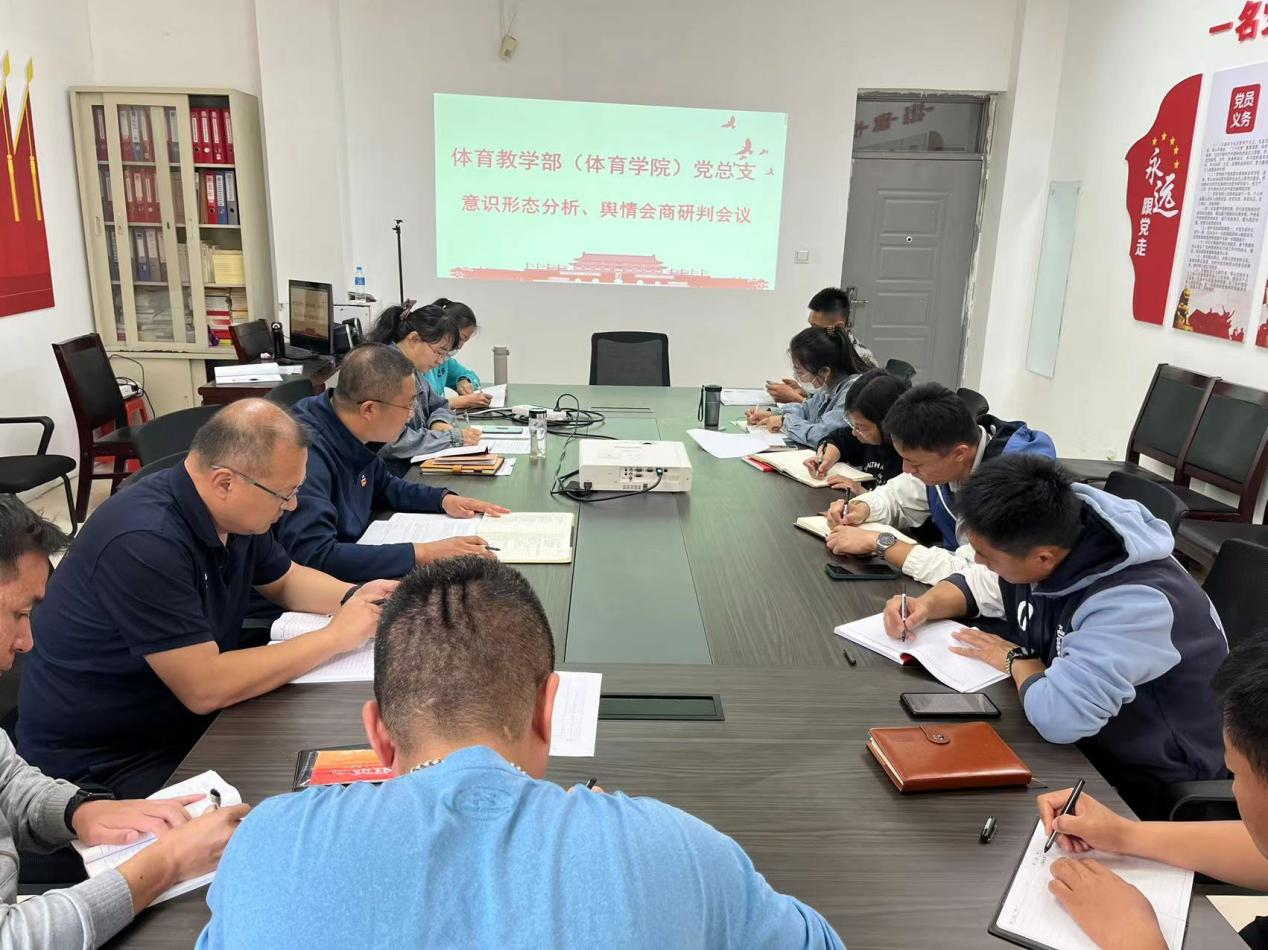 9月21日,yl7703永利集团党总支在体育馆一楼会议室召开意识形态分析、舆情会商研判会议,学院党总支书记苗凯主持会议,科级以上领导干部参会。