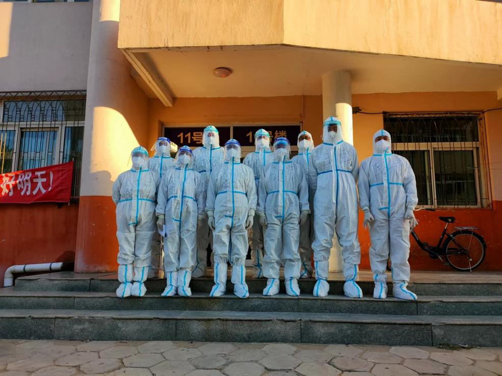 (图1 早上结束核酸检测后工作人员合影)