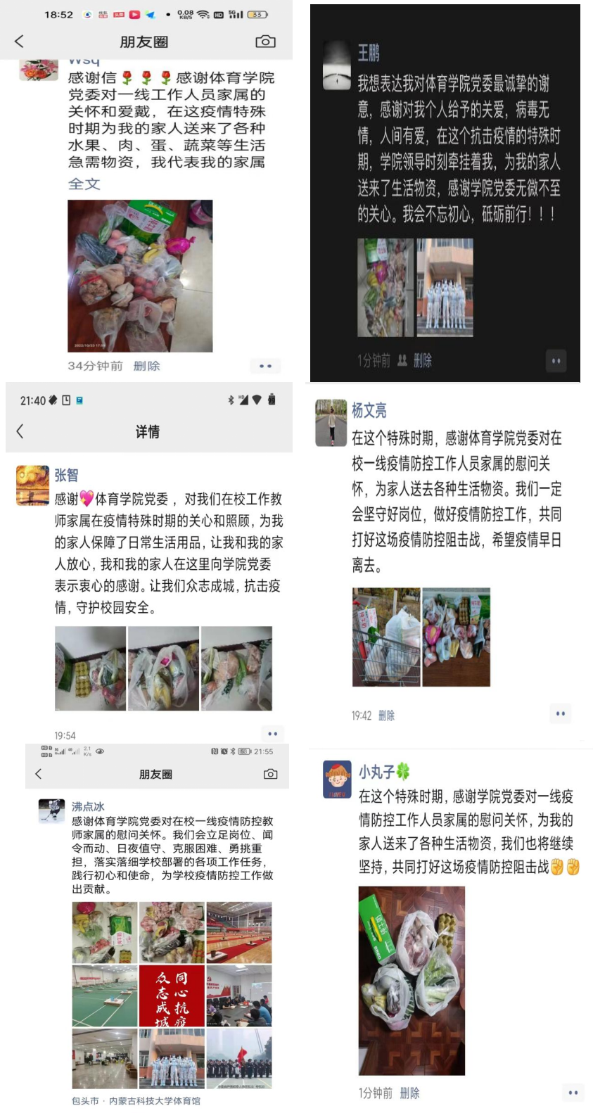 家属们表示,感谢学院党委的关怀与帮助,将一如既往地对自己的亲人在一线执行抗疫任务给予理解与支持,继续做好后勤保障工作,把家庭照顾好,当好他们的坚强后盾,为学校疫情防控工作贡献后备力量。