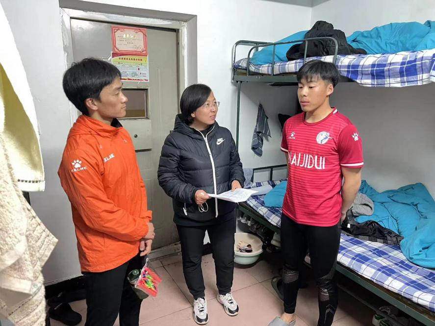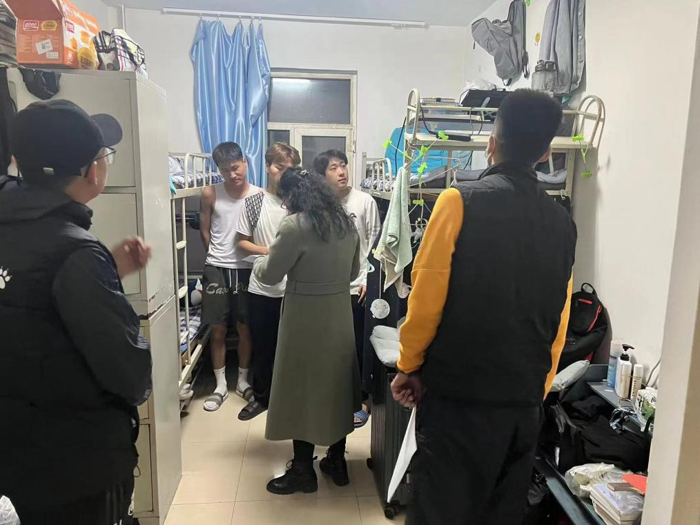 2023年4月7日晚8点,yl7703永利集团党委书记苗凯、党委副书记武淑琴、学工办主任杨乐、辅导员王梦茹及各班主任老师对体育教育专业学生宿舍进行走访。