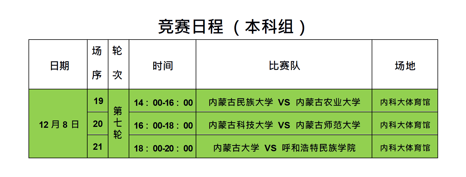2023年内蒙古自治区校园足球大学生室内五人制联赛暨啦啦操总决赛本科组联赛竞赛日程
