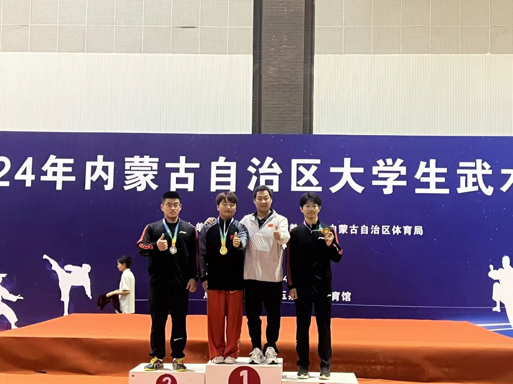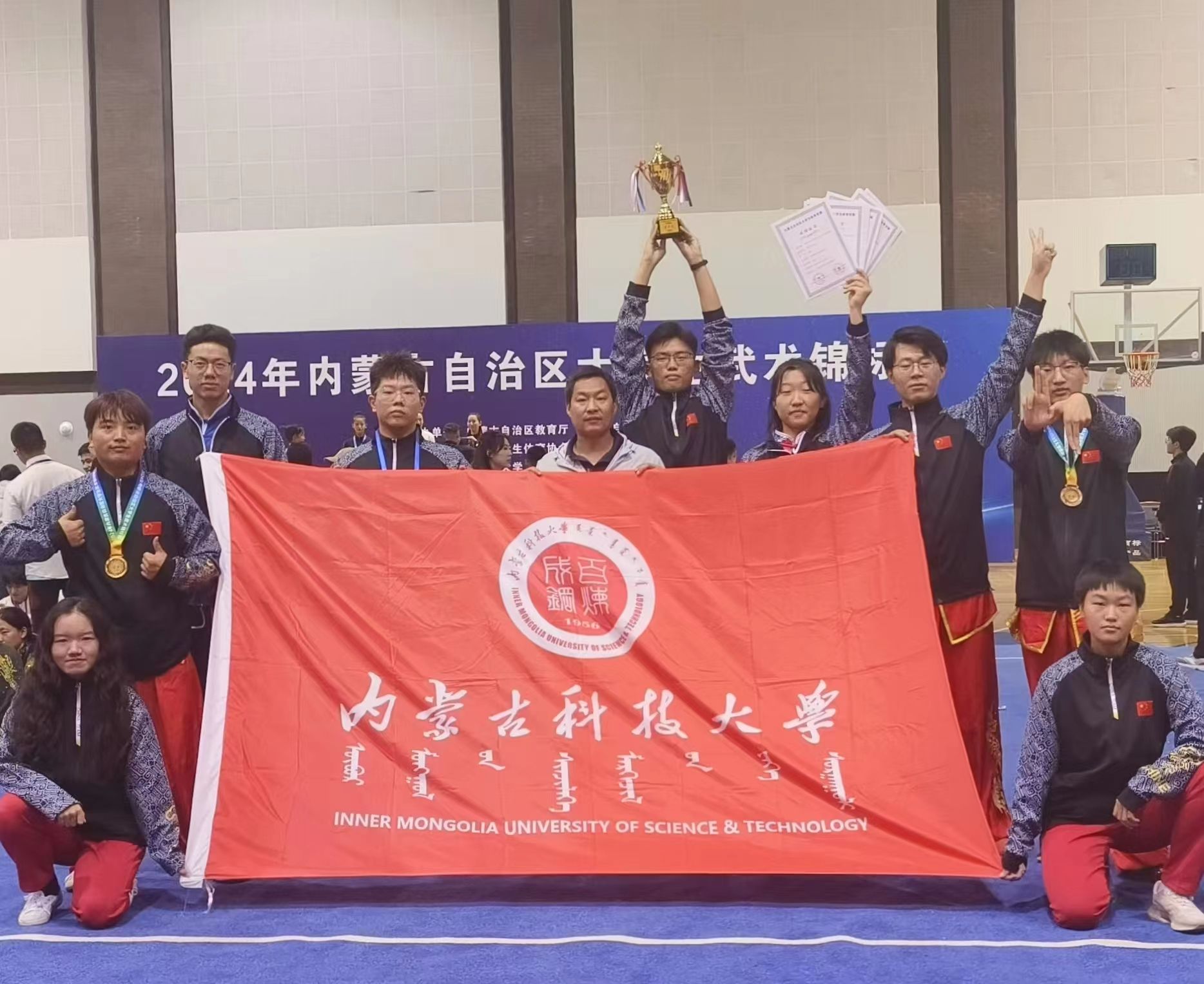 金秋九月,硕果累累。在 2024年9月24日至25日,由内蒙古自治区教育厅、内蒙古自治区体育局主办,内蒙古学生体育协会执行,内蒙古大学承办的 2024 年内蒙古自治区大学生武术锦标赛上,yl7703永利集团逯中伟老师带领武术队10名队员参赛,荣获单项冠军2项、季军1项,其余奖项若干,集体项目第二名的好成绩(具体获奖名单附后)。