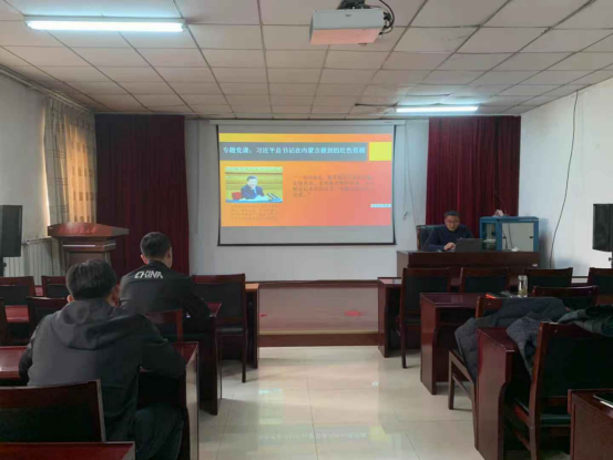 4月15日下午,yl7703永利集团副主任(副院长)苗凯为全体教职工做了习近平总书记在内蒙古提到的红色资源专题党课,党课在二楼多媒体教室进行。