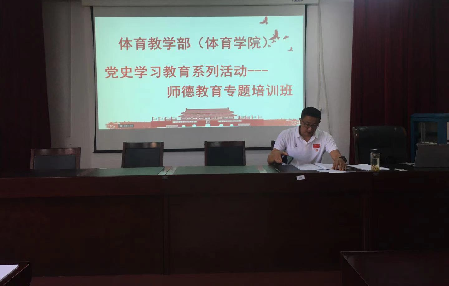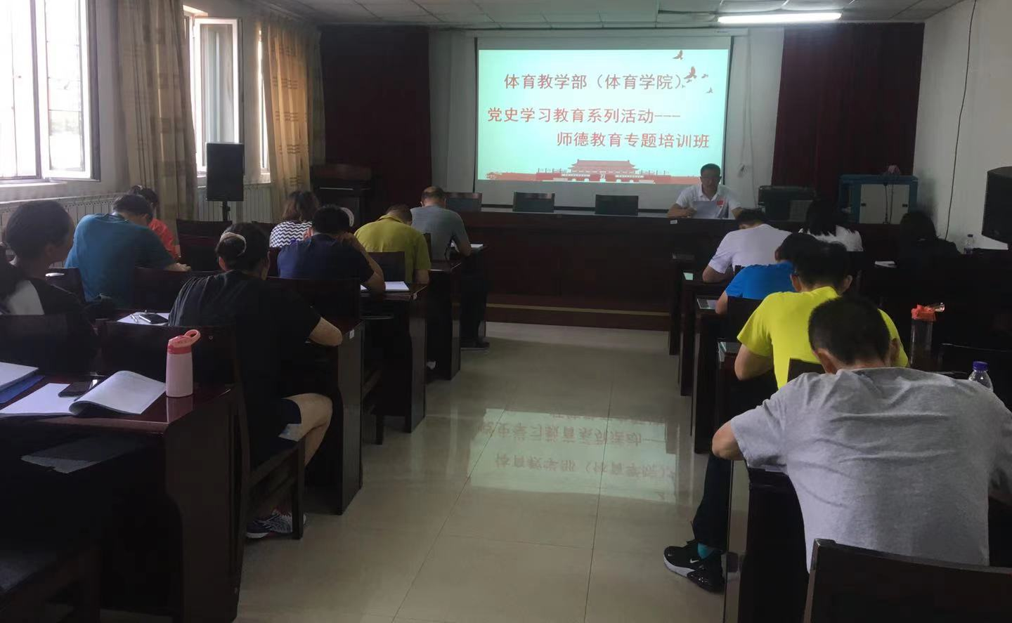 为全面贯彻落实习近平总书记关于教育的重要论述和全国教育大会精神,提高广大教师思想政治素养和职业道德水平,2021年7月16日,yl7703永利集团党总支在体育馆二楼多媒体教室举办党史学习教育——师德教育专题培训班。本次读书班采取现场教学、视频学习、学习研讨等学习形式,学习氛围浓厚,取得了良好的学习效果。