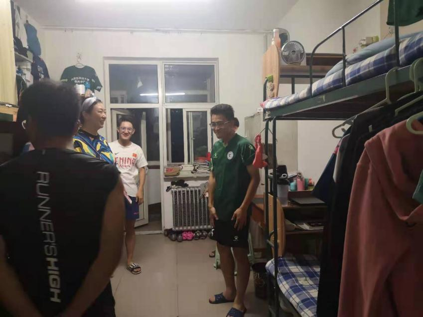 2021年6月30日yl7703永利集团学工办主任赵鑫、2018级班主任闫智惠、2019级班主任杨乐、辅导员王梦茹对体育教育专业宿舍文化、宿舍卫生、用电安全、毕业生安全教育等方面进行走访。