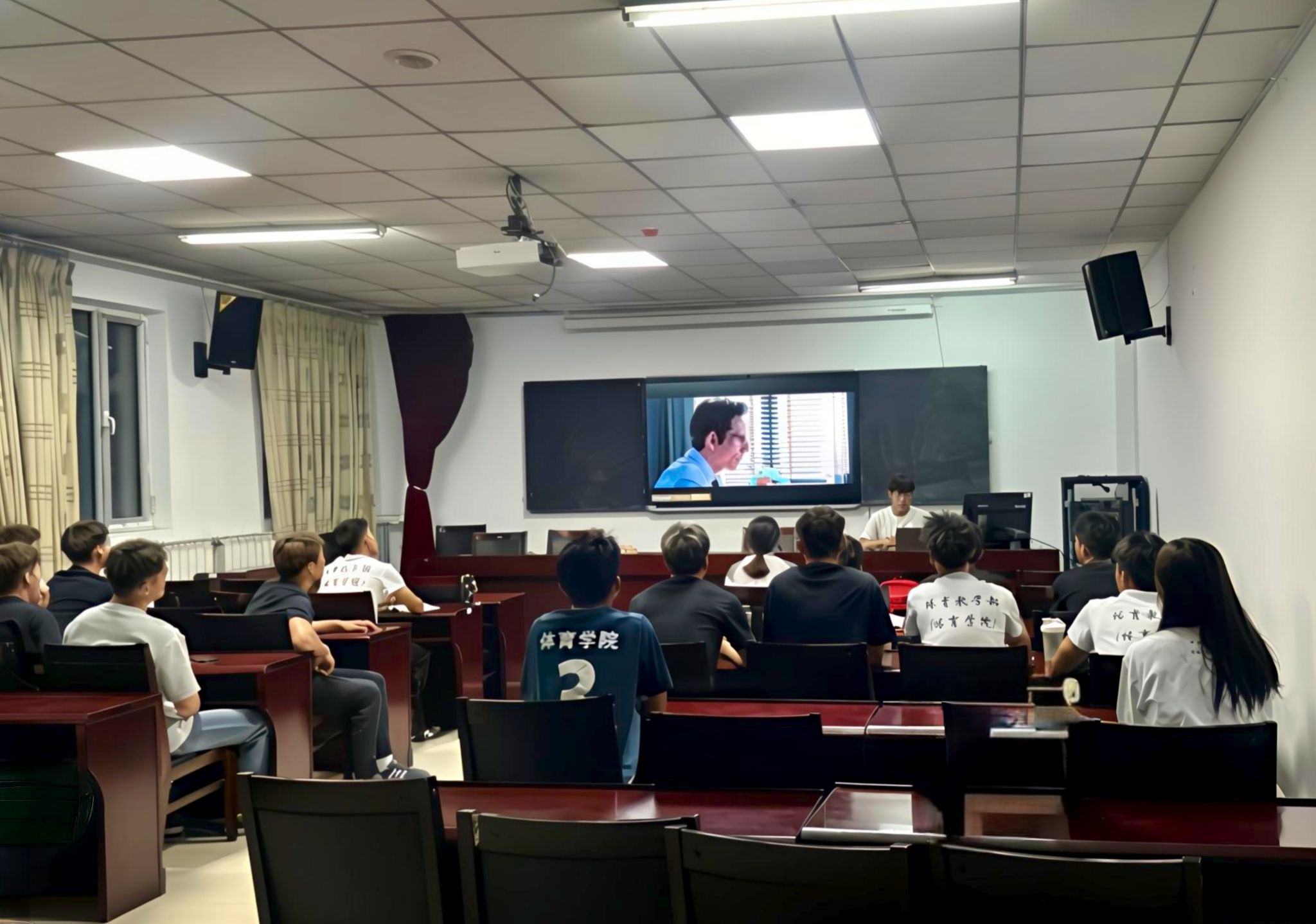 “光影疗愈·心灵之旅”观影会在多媒体教室拉开帷幕。同学们共同观看了心理题材电影《白日梦想家》。影片讲述了内向的沃特从沉溺幻想到勇敢踏上冒险之旅,最终实现自我突破的故事。当银幕中沃特在冰岛纵身跃入海水追逐直升机,以及在喜马拉雅山执着寻找摄影师的场景出现时,现场不时响起惊叹与掌声;而温馨的情感片段则引发了大家的深度共鸣。观影结束后,2023级体育教育专业的陈超分享道:“沃特突破自我的过程让我联想到体育训练中的瓶颈期——就像长跑时突破‘极点’一样,勇气和行动才是打破束缚的关键。”同学们结合运动员生涯中面对的压力与挑战,畅谈如何将电影中的“心力量”转化为现实中克服心理障碍的动力。