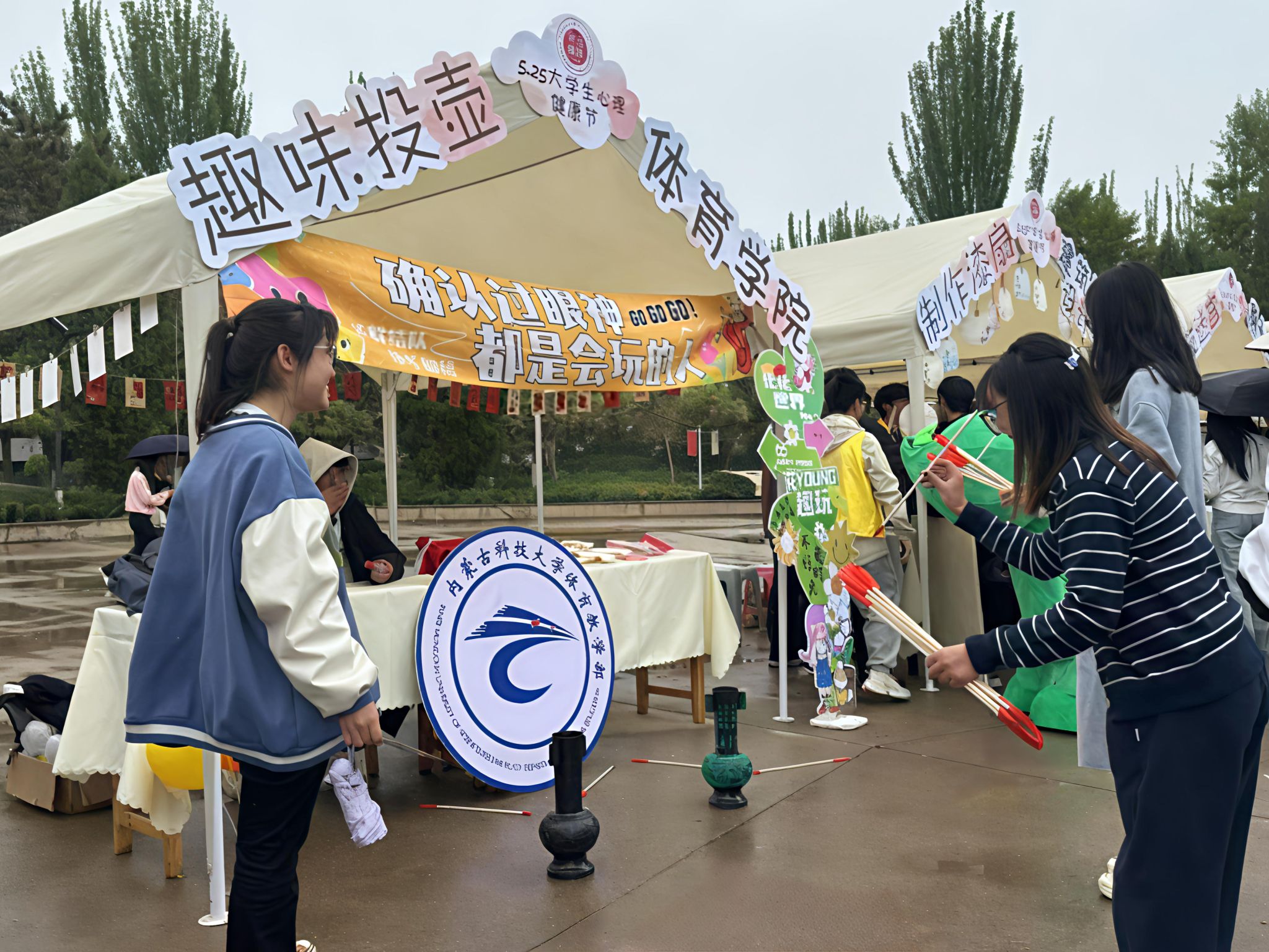 午后的活动中心广场变身“心理嘉年华”的欢乐现场。融合体育特色与心理调适理念的系列活动精彩纷呈,体育学院组织的“趣味投壶”挑战赛让不少同学在“稳中求进”的尝试中体会到“心态决定表现”的深意,活动让大家在轻松氛围中拉近了心理距离,也学会了用更积极的方式面对压力。