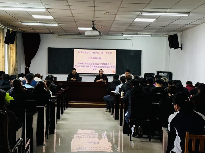 为落实支部“百炼成钢跟党走,全员育人促就业”七个行动,联合地方体育局职业技能鉴定站,2025年4月10日,党员教师孙治国、张斌组织游泳、网球、体适能等专项技能培训及游泳救生员国职考核解读,推动“学历+职业资格”双通道建设,践行“全员育人促就业”使命。